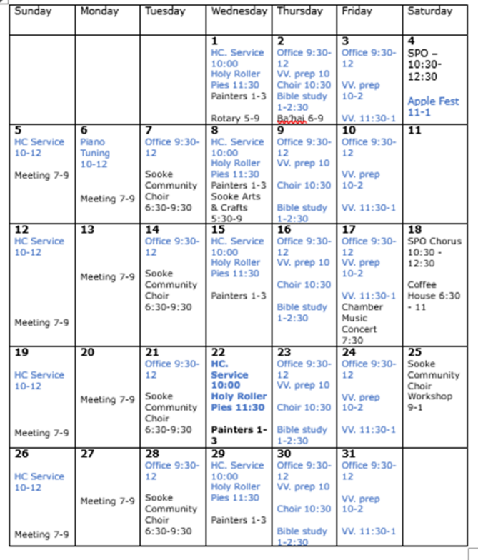 OCTOBER 2025 Light Blue type denotes Holy Trinity event.